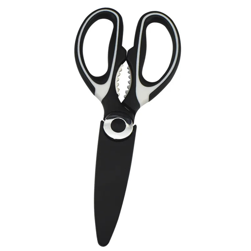 MULTIFUNCTION SHARP SCISSORS:The kitchen scissor has micro-serrated blade edges which provide non-slip cutting for various different kitchen tasks. Additional bottle opener design in the blade let you open bottles and jars quickly and easily.